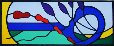 © All images are copyright Clare Hudman and must not be reproduced, copied or used in any way without her written permission Some years ago I completed several stained glass mosaics, featuring engraving and kiln-fired painting. The three dimensional nature of these pieces is hard to capture with a photo, but you can see the birds panel to the left (which was designed for outdoor installation in a private garden in Stroud and is weatherproof). Also below is a series of stained glass mosaics designed and installed for the Coast Resource Centre at Diamond Batch in Weston Super Mare. In a health service setting, these pieces not only make a big difference to an institutional environment but also act as waymarkers and navigational aids. They are fitted "invisibly" to the walls. .... more below .... |