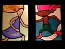 | Some of the results of workshops with children from three Gloucestershire schools - photos of windows at Coberley and Sheepscombe: | |